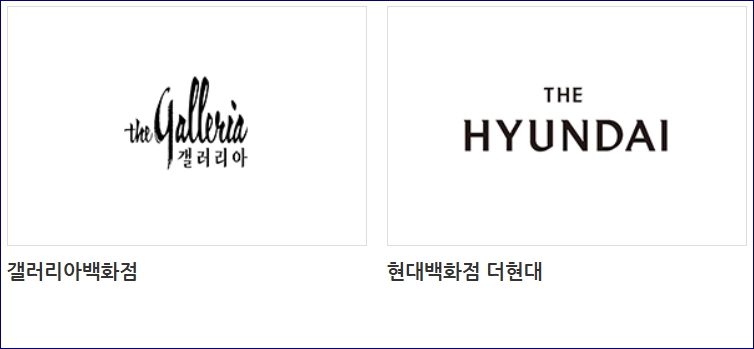 갤러리아백화점, 현대백화점 더현대, AK플라자, 창원대동백화점, 그랜드백화점(일산점), 신세계, 롯데백화점