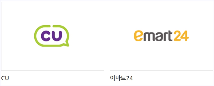 롯데슈퍼, GS25, CU, 이마트24, 이마트에브리데이, 세븐일레븐, GS더프레시, 홈플러스익스프레스 그 외 다수.